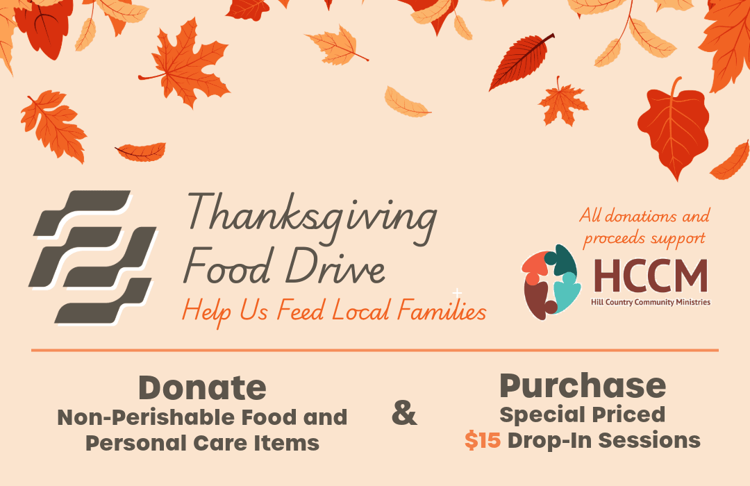 From November 2 through November 16, Fifty/50 Pilates is supporting Hill Country Community Ministries with a studio food drive and special $15 drop-in sessions. Bring non-perishable food items to the studio to help stock the local food bank, or join a class for just $15 — every dollar goes toward buying high-need food for local families. These sessions are open to everyone and make a thoughtful gift for friends or family. Join us in giving back this season.