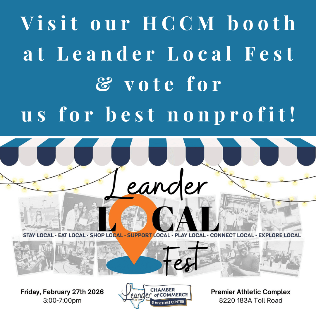 Join HCCM for an exciting indoor community fair celebrating the best of Leander! This family-friendly event brings together local businesses and vendors, performers, and organizations for a day full of discovery, connection, and fun. Plus, you can vote for your favorite nonprofit and the winner gets $500!